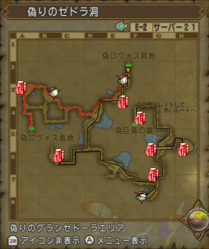 奥まで拾ったらリレミトで出て、赤い線のコースへ。
