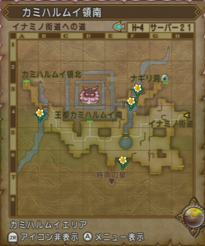 私がこのコースを回るときは、カミハルムイから出てカミハルムイ領南をイナミノ街道に向かって拾い歩いてました。